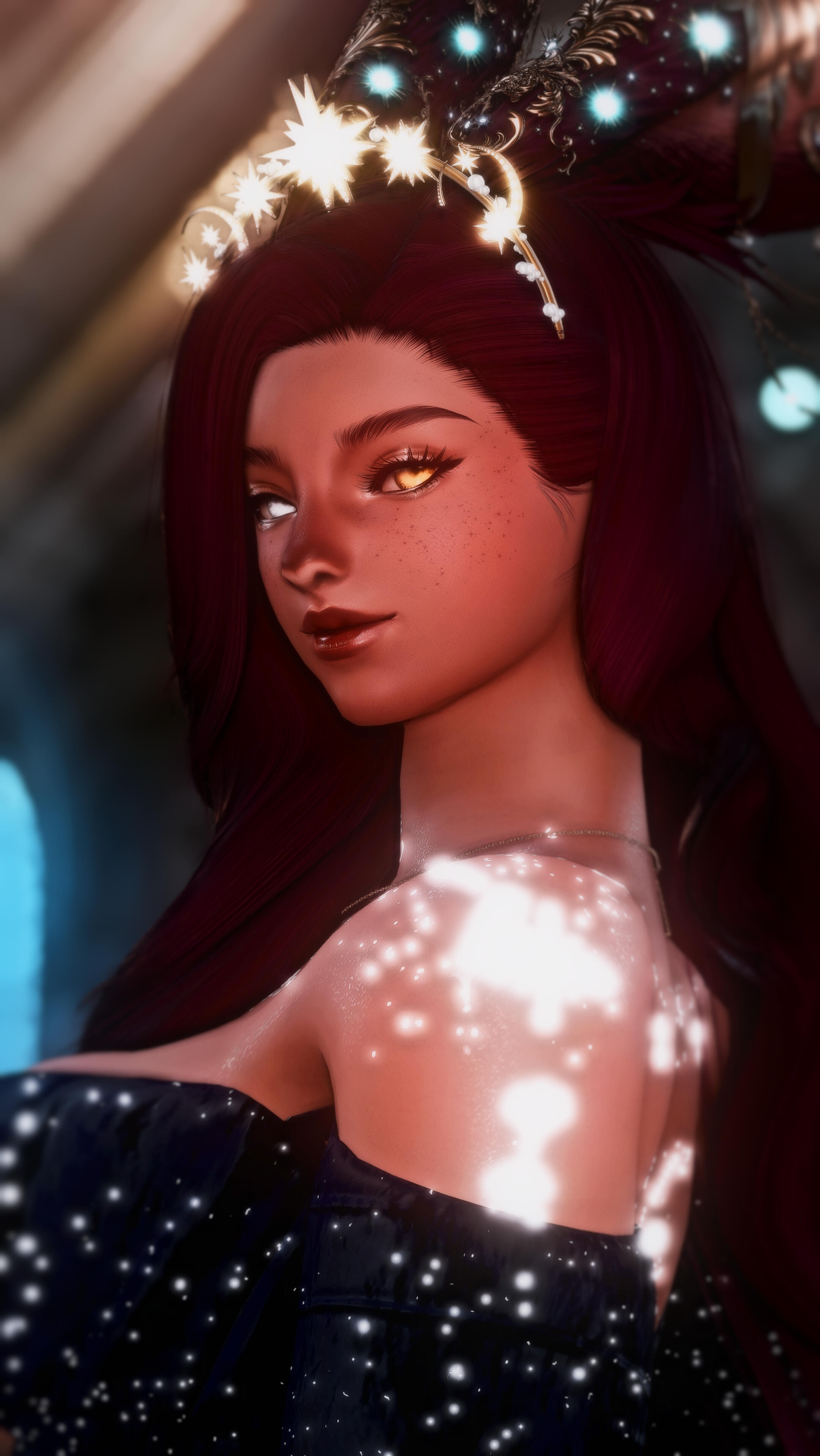 Lady Arowyn has a constant halo of, to the untrained eye, stars crowning her head and caught in her remaining eye as well as glowing celestial marks all over her body. In fact, she seems especially strong during a clear, star-filled night. Her combat, whether physical of magical, also is never without the accompaniment of aether that to the naked eye, looks like galaxies. If you happen upon the Athenaeum Astrologicum, you will often see Arowyn in deep conversation with the Astrologians within.—ㅤLady of Galaxies. Requirements: Aethersight