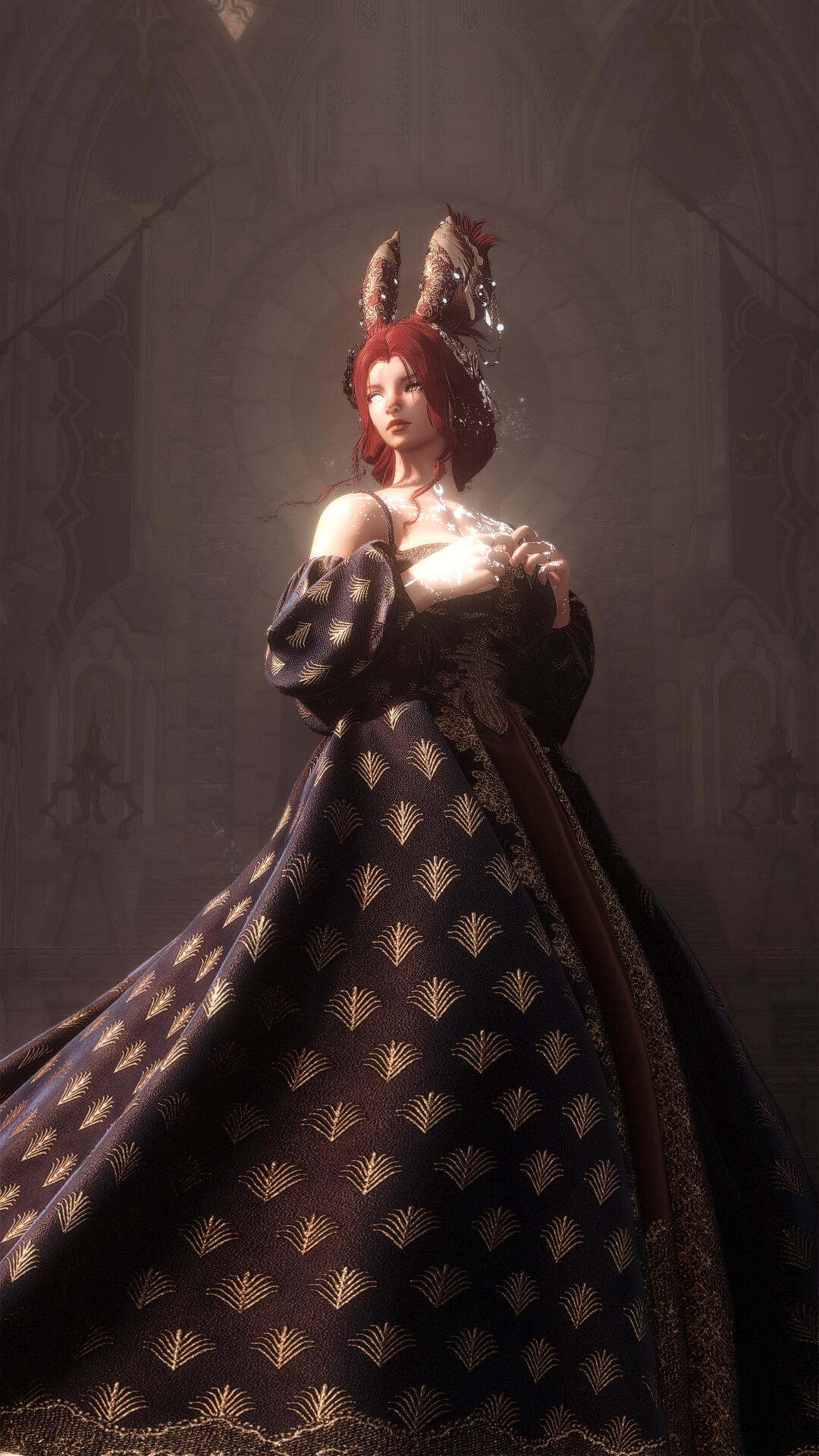 Fluent in the social languages of the upper crust, despite being a newcomer to nobility Aro fits right in. Elegance in her movements and speech, flattery on her tongue, a polite smile, and a cunning mind, collecting information for her own ends - one might assume Aro was raised in the gilded halls of Ishgard's elite.—ㅤWarmth of Stars.