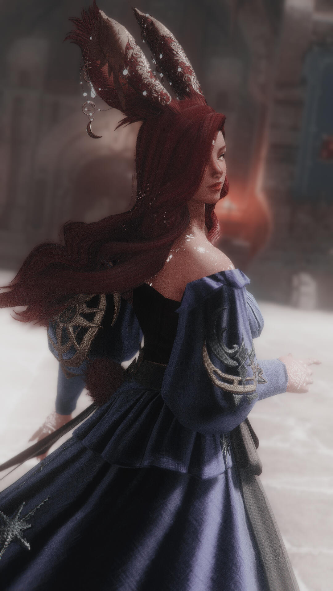 Fluent in the social languages of the upper crust, despite being a newcomer to nobility Aro fits right in. Elegance in her movements and speech, flattery on her tongue, a polite smile, and a cunning mind, collecting information for her own ends - one might assume Aro was raised in the gilded halls of Ishgard's elite.—ㅤWarmth of Stars.